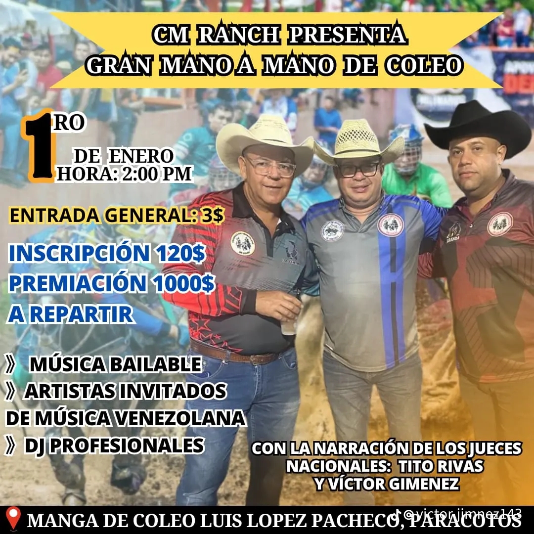 Gran mano a mano de coleo de Toros en #Paracotos se celebro este primero de Enero de 2025, en la Manga Luis López Pacheco